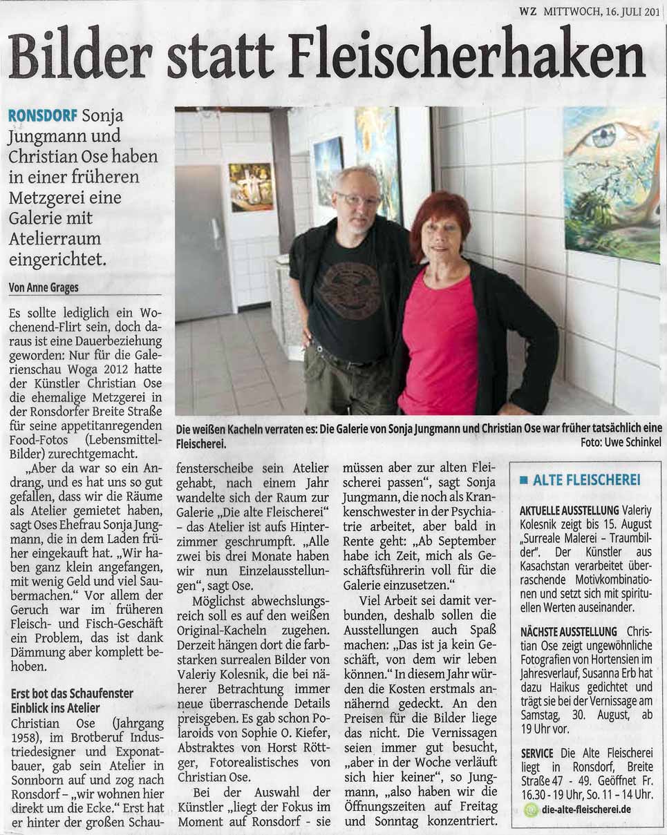 Pressemitteilungen  zu Christian Ose und "Die alte Fleischerei" Zeitungsartikel Christian Ose ist beides: Fotograf und Maler.